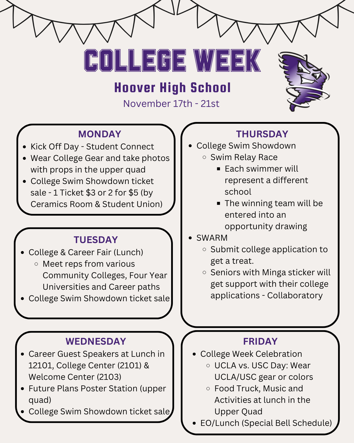 Dear Tornado Families and Staff, College Week is here! 🎓 From November 17–21, our DSA students and counseling team have planned a full week of exciting college-themed activities for all students. E...