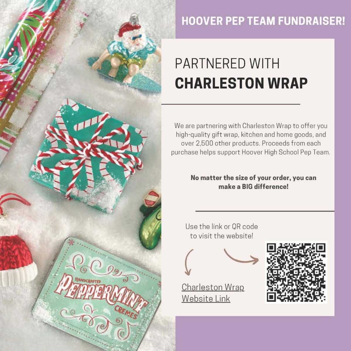 We are partnering with Charleston Wrap to offer you high-quality gift wrap, kitchen and home goods, and over 2,500 other products. Proceeds from each purchase helps support Hoover High School Pep Team. No matter the size of your order, you can make a BIG difference.