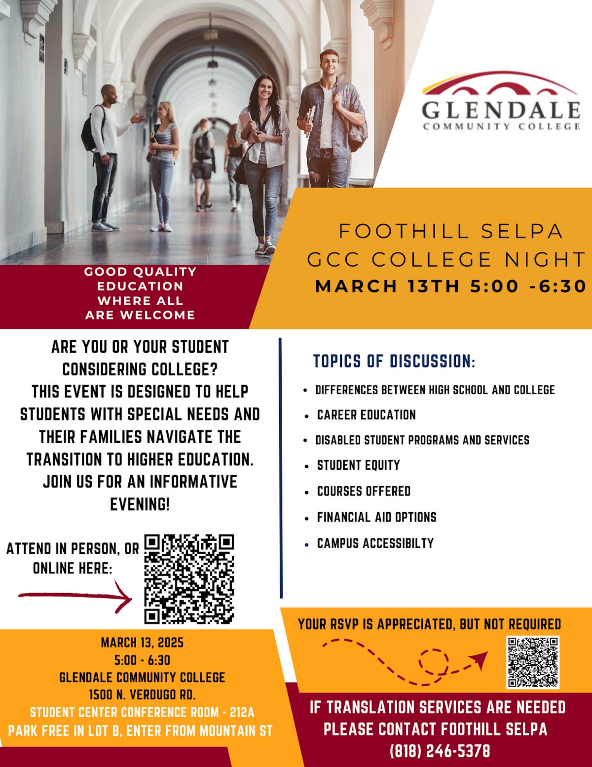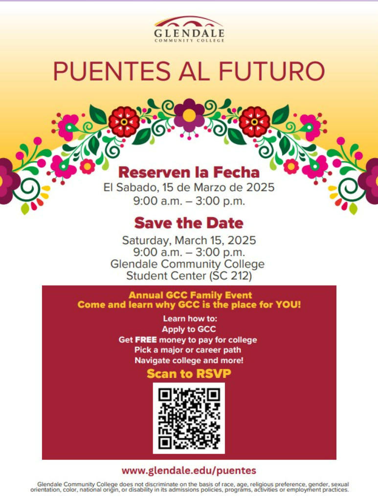 GCC is on campus every Tuesday at lunch outside the College & Career Center, Room 2101: Get answers to many of your questions on Dual Enrollment, ECA, certificate programs, important dates, enrollment steps, online application, etc. Go to glendale.edu/hs to learn more.