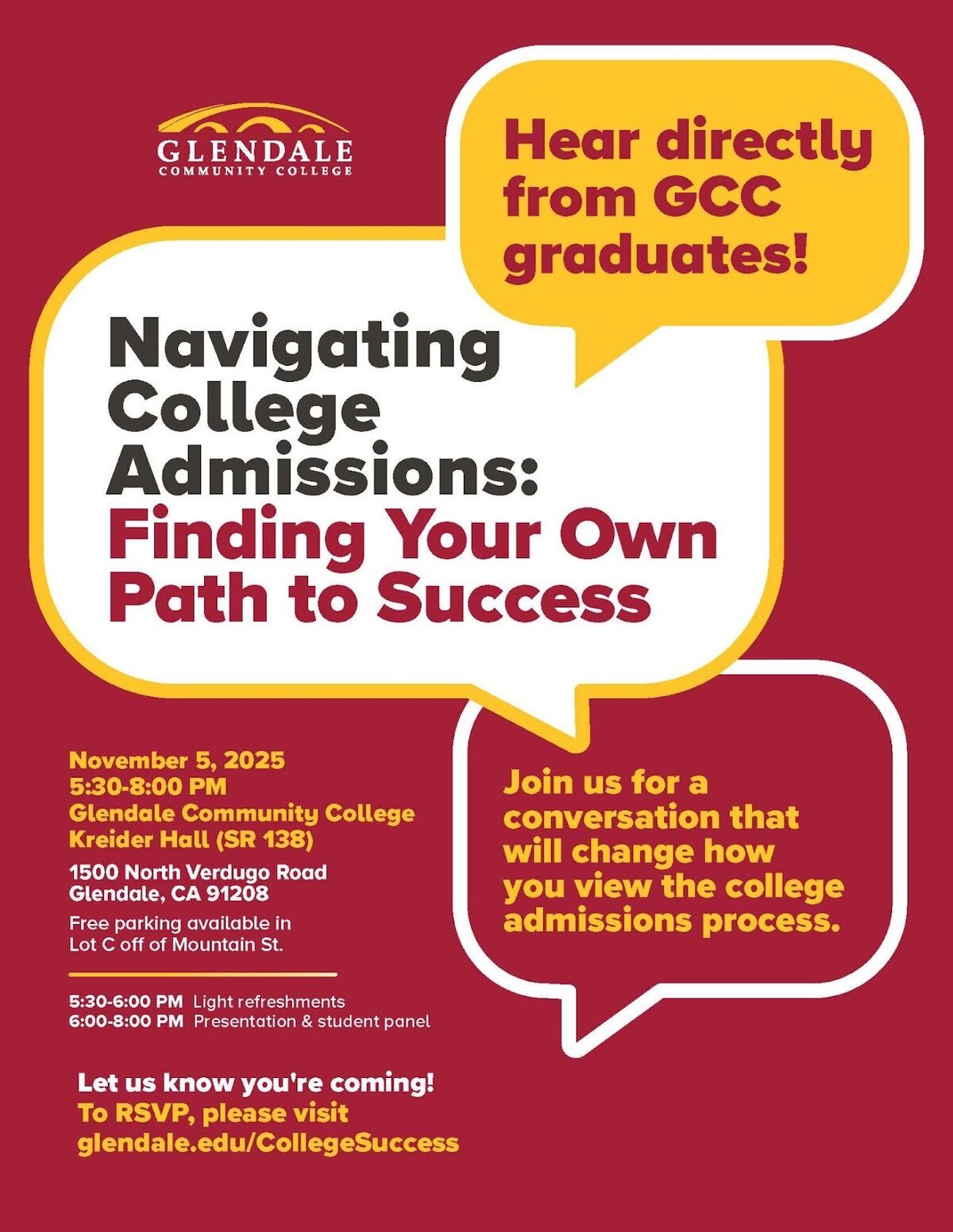 Join Glendale Community College for a conversation that will change how you view the college admissions process.