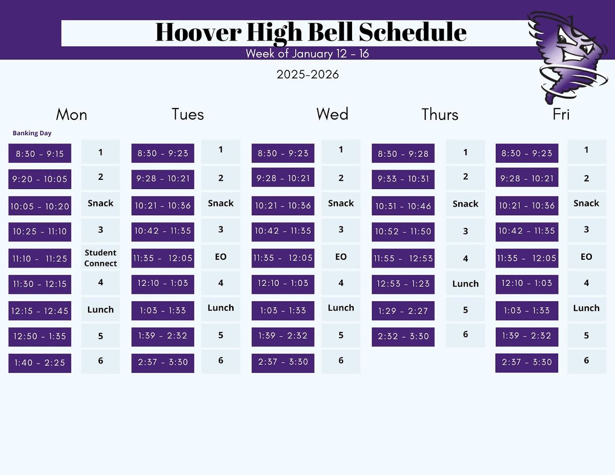 At Hoover we believe all students should be respectful, responsible, and engaged everyday! Students are expected to be in class on time everyday and follow our cell phone and electronics policy. Violations of these policies will lead to consequences.