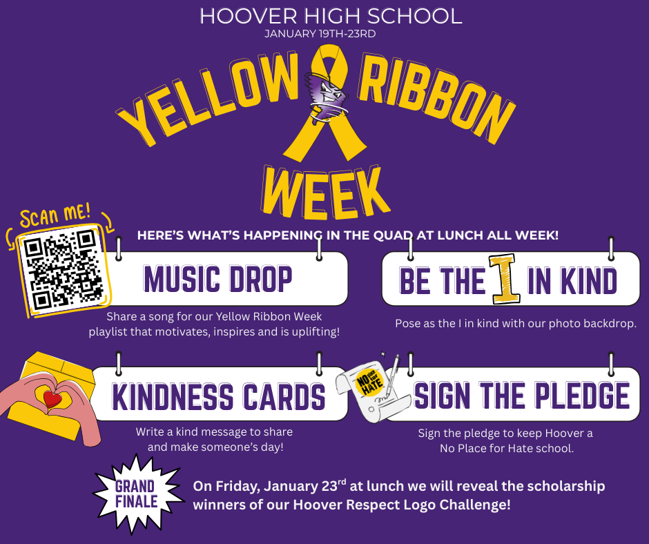 As a reminder to all students and families, at Hoover we promote a safe and inclusive environment for all students and staff. We have no tolerance for any hate speech or hurtful language. Any students using such language will receive serious consequences.
