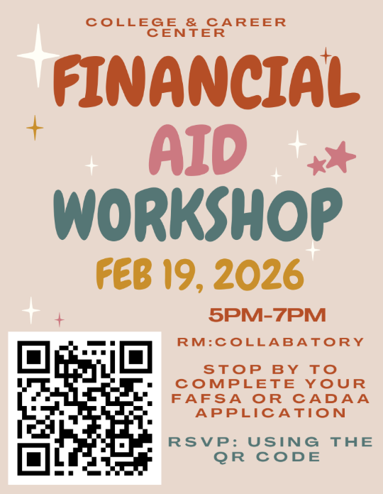 Hoover will be hosting a FAFSA/CADAA Workshop on February 19th from 5:00 pm-7:00 pm at the Collaboratory.