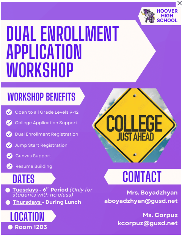 Hoover’s Open House, Hoover is Home is on March 5, 2026, beginning at 5:30 pm. Just a reminder that all students who plan to take an AP class for the first time must attend AP Information Parent Night at 5:00 pm in the auditorium before Open House. Please see the flyer included in this email for more details.
