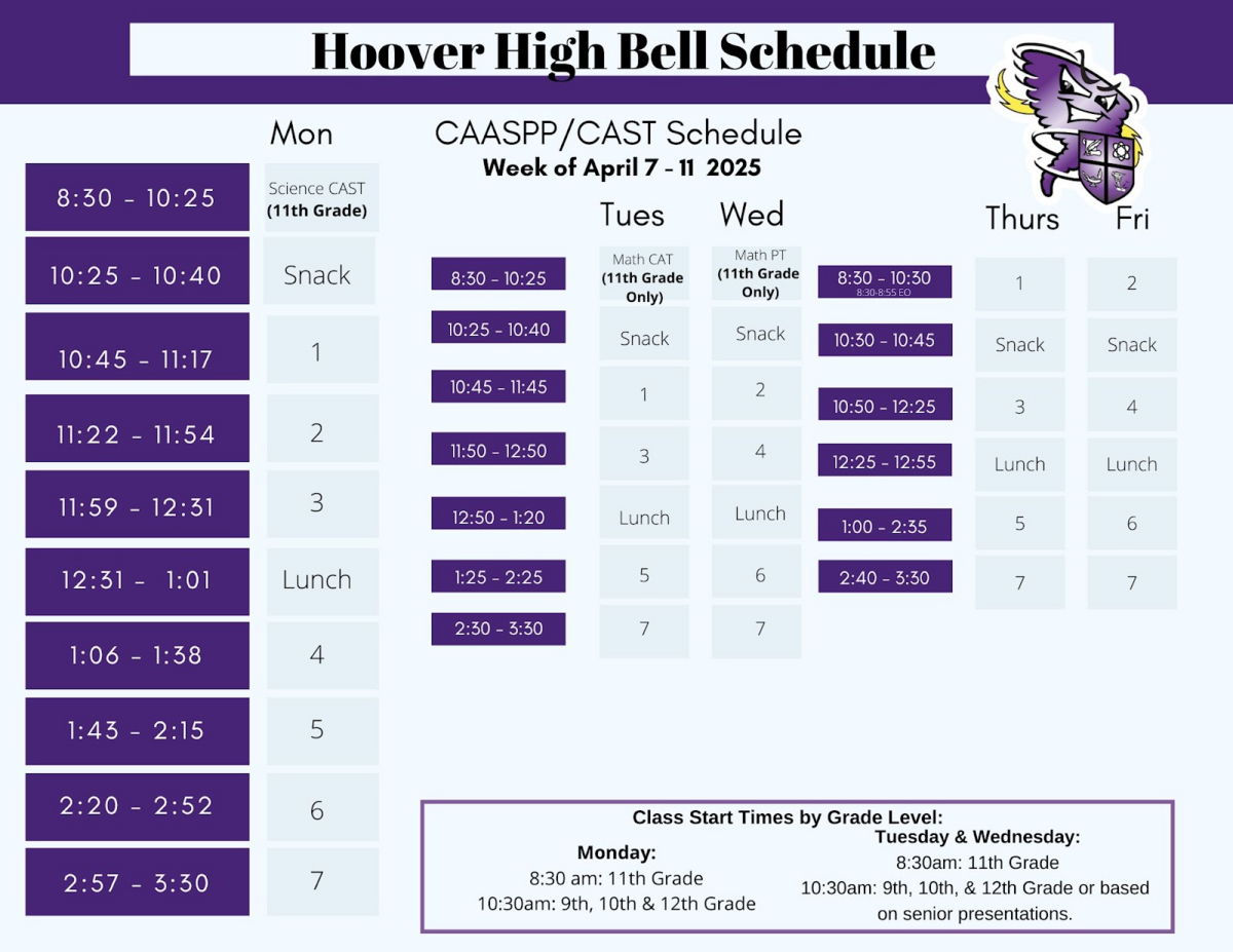 Over the next two weeks, our Juniors will be taking the CAASPP State Assessment. Please see below for the bell schedule. We wish all of our Juniors the best of luck on the assessment. We know that you will rock it!!!!