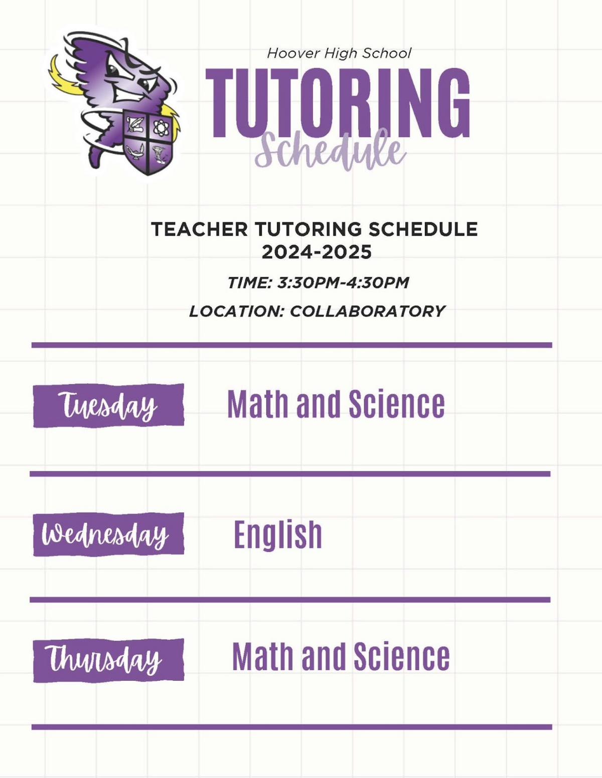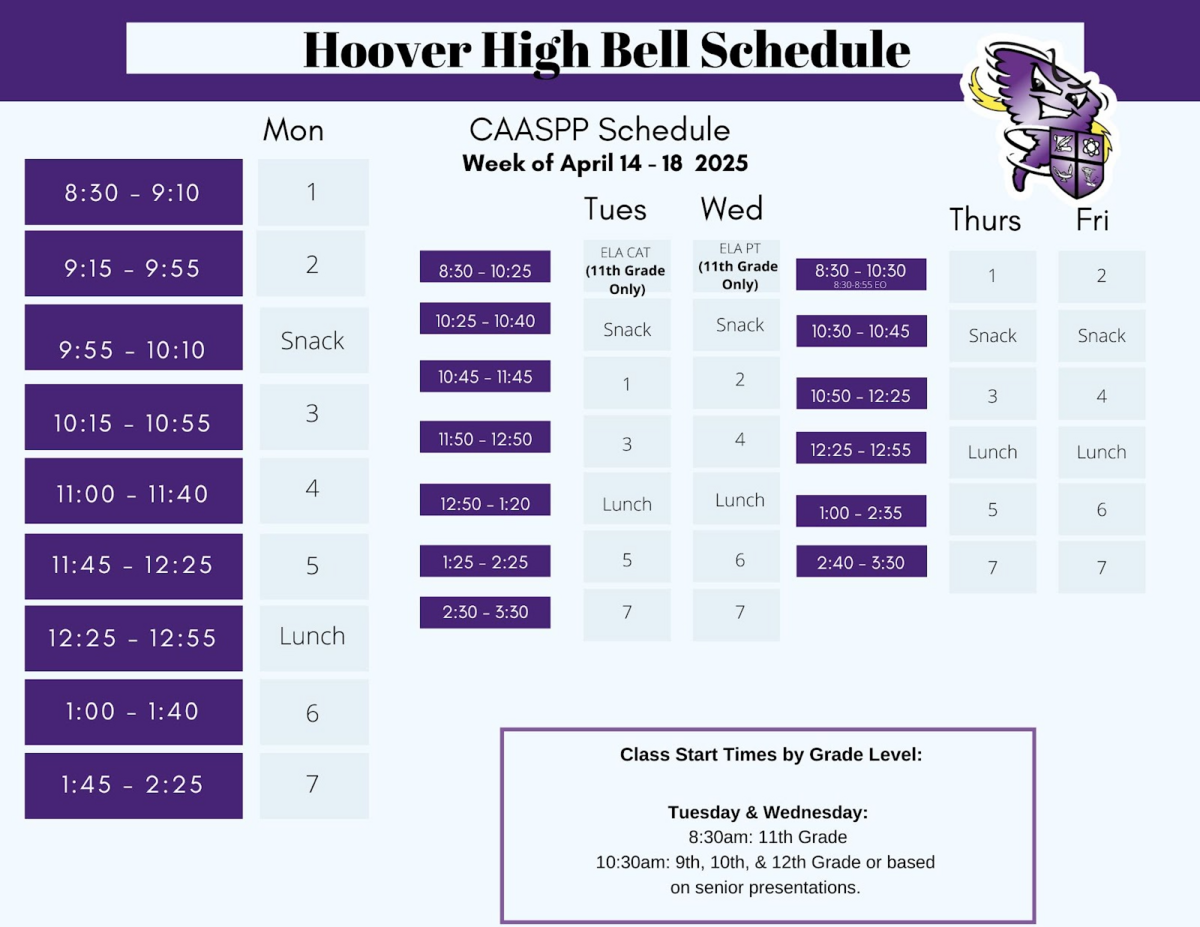 At Hoover we believe all students should be respectful, responsible, and engaged everyday! Students are expected to be in class on time everyday and follow our new cell phone and electronics policy. Violations of these policies will lead to consequences.