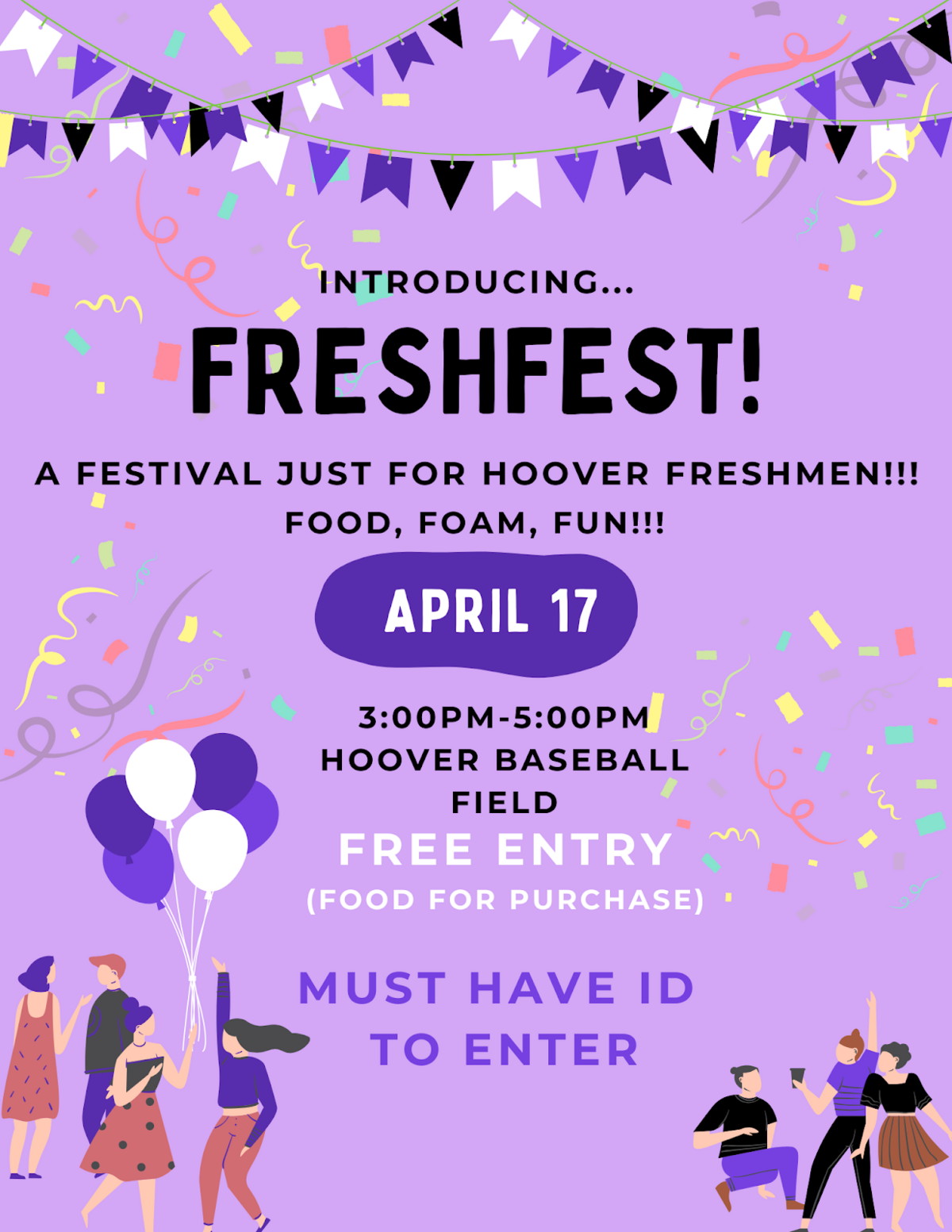 Attention 9th graders! We are excited to announce our Second Annual FreshFest - a special celebration just for our freshmen! Join us on Thursday, April 17th, from 3:00-5:00 pm on the baseball field for an afternoon of food, games, music, and fun. FreshFest is all about building community and helping our 9th grade students feel connected during their first year at Hoover. To make this event possible, EO will be held from 3:00–3:30 pm, and all 9th graders will be released to the baseball field at 3:00 PM by their teachers. 🎉 Don’t miss this exciting event! 📍 Check out the flyer below for more details — we can’t wait to see you there!