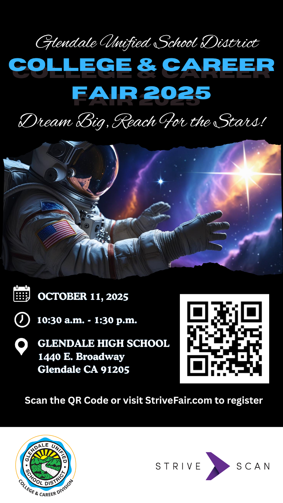 GUSD College and Career Fair- Saturday, October 11th, 10:30am -1:30pm @ Glendale High School (See Flyer Below)